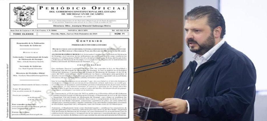 El secretario de Gobierno, Raúl Zepeda Villaseñor, informó la publicación en el Periódico Oficial del Estado del decreto que reforma el Reglamento de la Ley de Movilidad y Seguridad Vial y elimina las multas e infracciones económicas de tránsito en Michoacán.