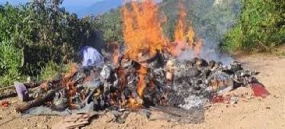 Una vez que los oficiales procedieron a qu inspección, destruyeron los campamentos del crimen por medio de la incineración.