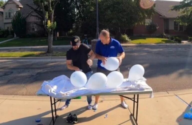 Hombres buscan romper récord mundial al reventar globos en tiempo récord